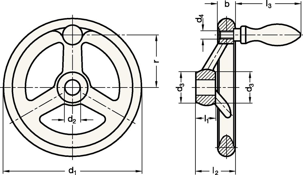 Handrad GN 950 b 15 mm d1 100 mm d2 10 mm