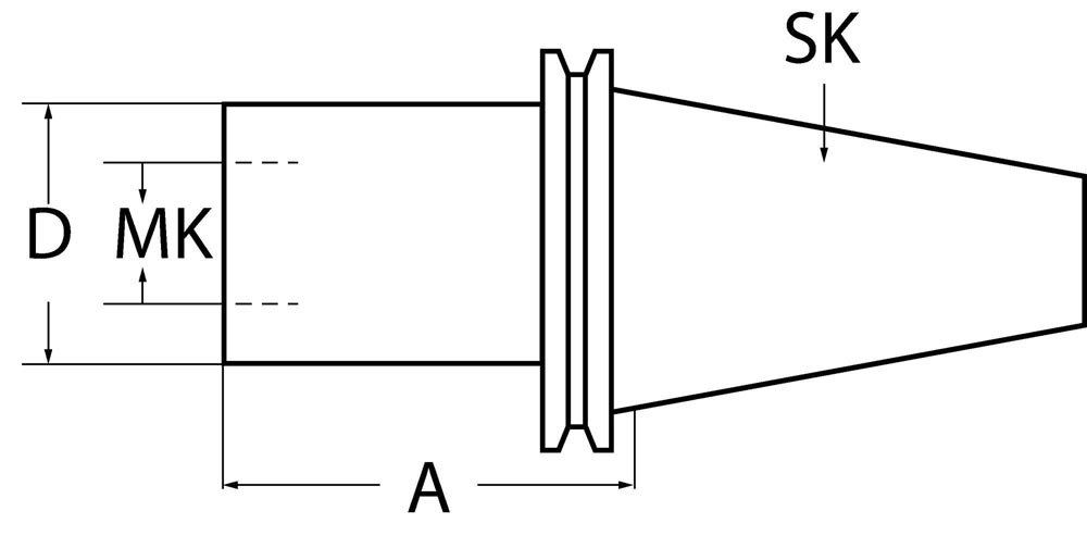 mit Steilkegel DIN 69871 Form AD · einsatzgehärtet und geschliffen · zur Aufnahme von Werkzeugen mit Morsekegel und Austreiberlappen