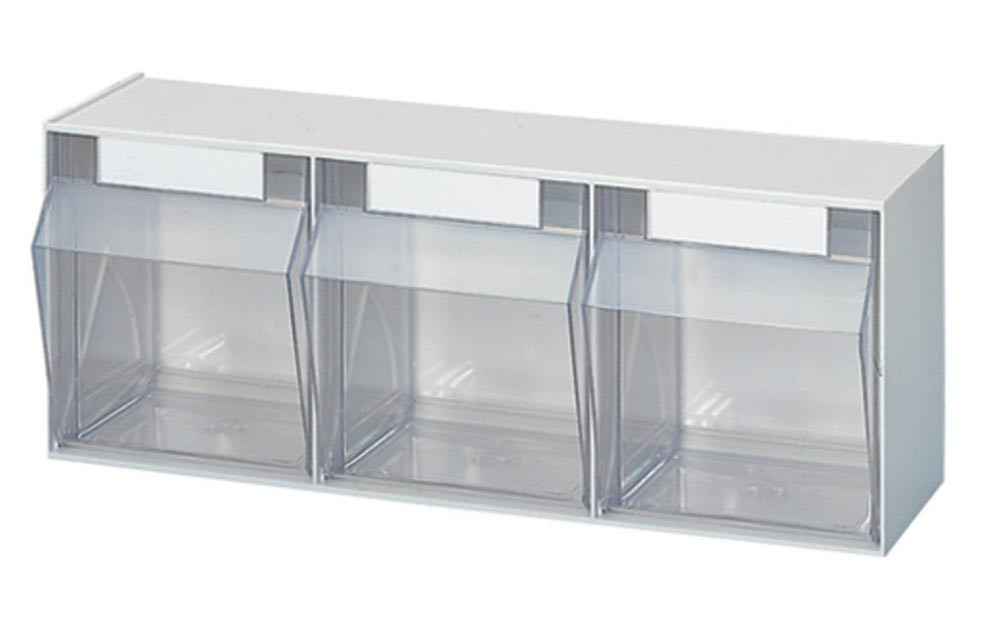 Klarsichtkästen im Gehäuse, 3 Klarsichtkästen Größe 3, BxTxH 600x163x242 mm, Gehäusefarbe weiß