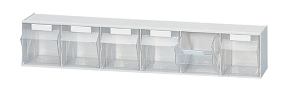 Klarsichtkästen im Gehäuse, 6 Klarsichtkästen Größe 6, BxTxH 600x75x113 mm, Gehäusefarbe weiß E860483