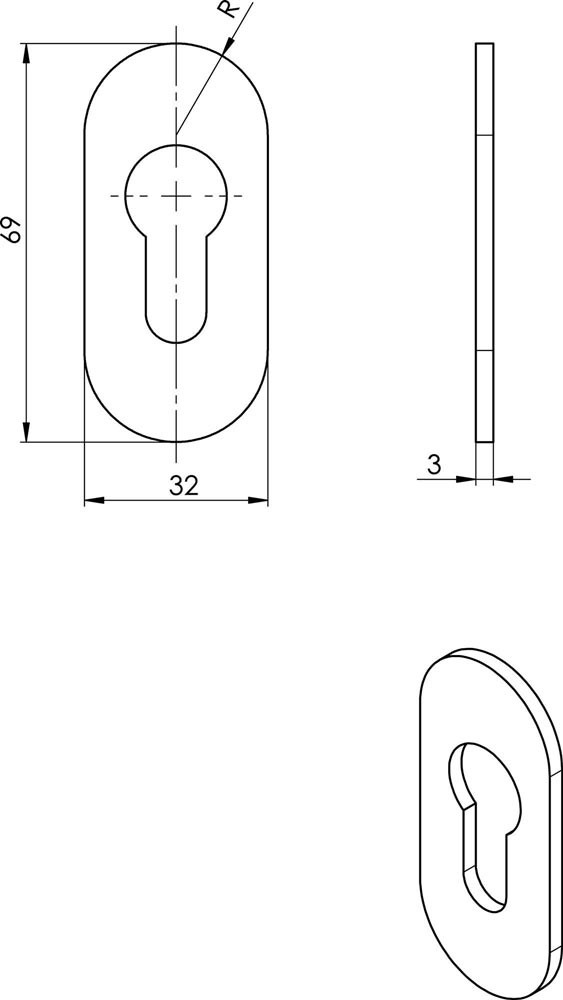 PZ · Schlüsselrosetten (6700) zum Aufkleben · oval · Ausführung: Einzelrosette · für Profiltüren