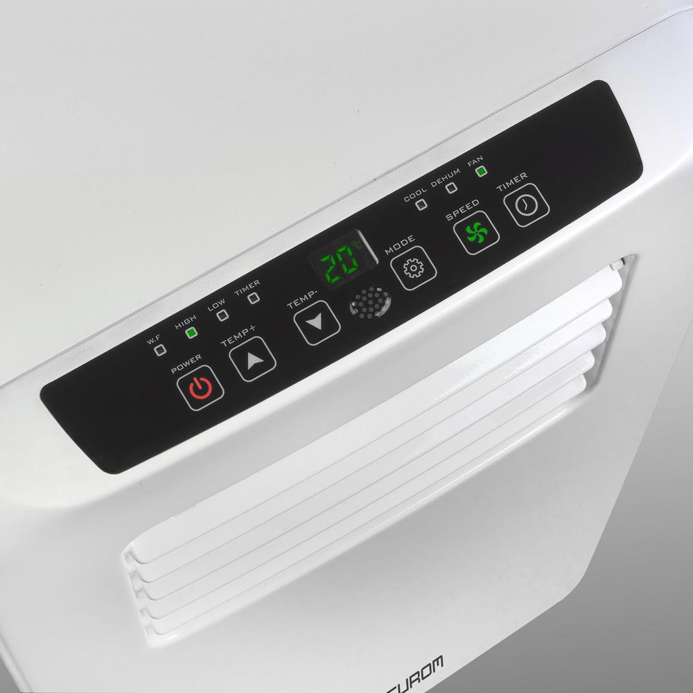 7000 BTU · mobile Klimaanlage · bewegt 320 m3 Luft pro Stunde · bis zu 0,8 Liter pro Stunde entfeuchtet · mit Fernbedienung und Timer