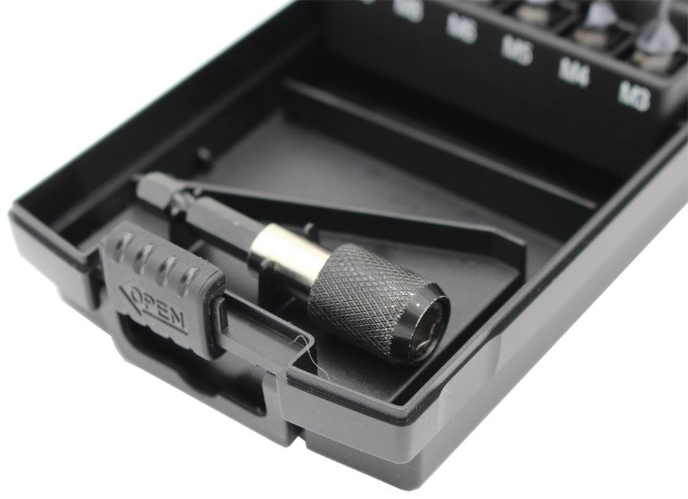 Inhalt: je 1 Stück M3, M4, M5, M6, M8, M10 und 1 Bitadapter in Kunststoffkassette