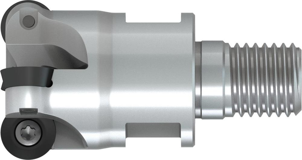 Plan-Kopierfräser mit doppelt negativer Geometrie welche 4 aus RD.. 12T3MOT oder RDHT 12T3MO-FA einseitige Wendeschneidplatte · Schneiddurchmesser bis maximal 35mm mit M16 Gewindeschaft für standardisierte modulare Trägerwerkzeuge · 42mm funktional und 65mm Einsatzlänge · durchgehende Kühlung zum Planfräsen · Kopierfräsen · Rampen · progressiven Tauchfräsen und helikalen Fräsen mit einer maximalen Schnitttiefe von 3mm