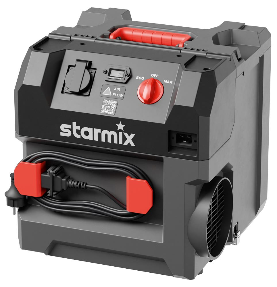 Filtert effektiv Staub aus der eingesaugten Luft und gibt sie gereinigt an die Umgebung zurück ∙ Trägt aktiv zur Vermeidung und Reduzierung von Schäden durch Staub gemäß TRGS 504 bei ∙ Hervorragend geeignet für herausfordernde Baustoffe wie einatembare und lungengängige Stäube, z. B. Beton-, Gips- und Hartholzstäube ∙ Werkzeugloser Filterwechsel ∙ Betriebsstundenzähler und Anzeige bei Volumenstromunterschreitung ∙ Anschluss für Abluft- und Zuluftschlauch ∙ 2-stufiges Filtersystem – HEPA Filter H13 und Vorfilter ∙ Steckdose zum Anschließen von Elektrowerkzeugen oder für Reihenschaltung mehrerer Bauluftreiniger ∙ Zwei Leistungsstufen Eco oder Max ∙