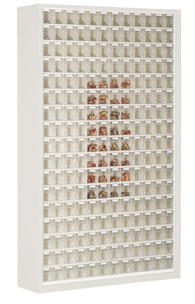 Magazinschrank, BxTxH 1270x250x2000 mm, 204 Kästen, 204xGr. 6, Gehäusefarbe RAL 7035 lichtgrau