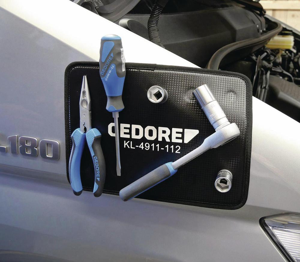 Ideal bei Reparaturarbeiten am Fahrzeug zur sicheren Ablage und Fixierung von Werkzeugen · Schrauben oder sonstigen Teilen · Durch die extrem starken Magneten werden selbst schwerste Gegenstände sicher und zuverlässig gehalten · Dazu kann die Matte einfach Lose abgelegt oder an magnetischen Oberflächen wie z.B. einem Werkstattwagen oder einer Hebebühne angehaftet werden · Die strukturierte Kunststoffoberfläche mit innenliegender Schaumstoffmembran vermeidet Beschädigungen an empfindliche Oberflächen · ist leicht zu reinigen sowie wasser- und ölbeständig