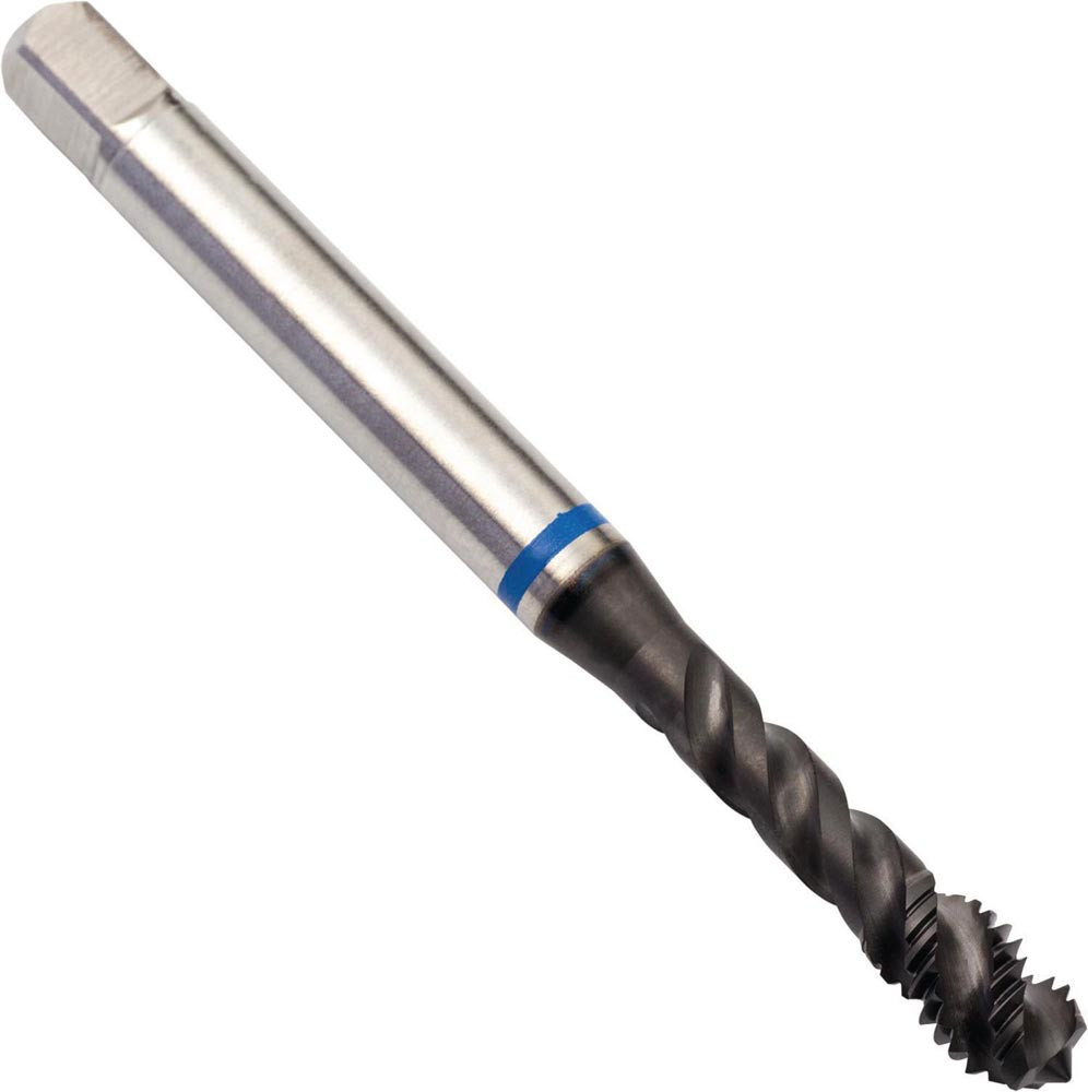 Spiral genuteter Gewindebohrer Blue Shark · Anschnittform C mit 2-3xP Gewindeanschnitt · ISO-Metrisches Gewinde M12 mit 1.75 mm Steigung und 6H Toleranzklasse · Abmessungen nach DIN 376 Standard mit 9.0mm Schaft und 7.0mm Vierkantantrieb · HSSE-PM mit Super-B Beschichtung und 48° Helixwinkel 3xD Sacklochgewinde in Ferritischer · Martensitischer und Austenitischer Edelstahl