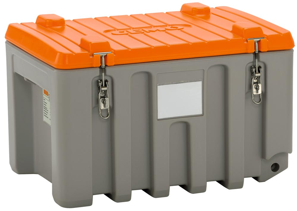 ∙ Behälter in grau/orange aus hochwertigem Polyethylen zum sicheren Transport und Aufbewahren von Werkzeugen und Kleinteilen ∙ Stapelbar, mit Arretierungsnocken ∙ Mit Staplertaschen (außer E 198 2340), integrierten Handgriffen und Deckelanschlag ∙ Durch eine umlaufende integrierte Dichtung absolut spritzwasserdicht · Mit 2 Extenterverschlüssen · Mit integrierter Etikettentasche