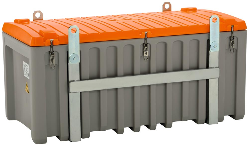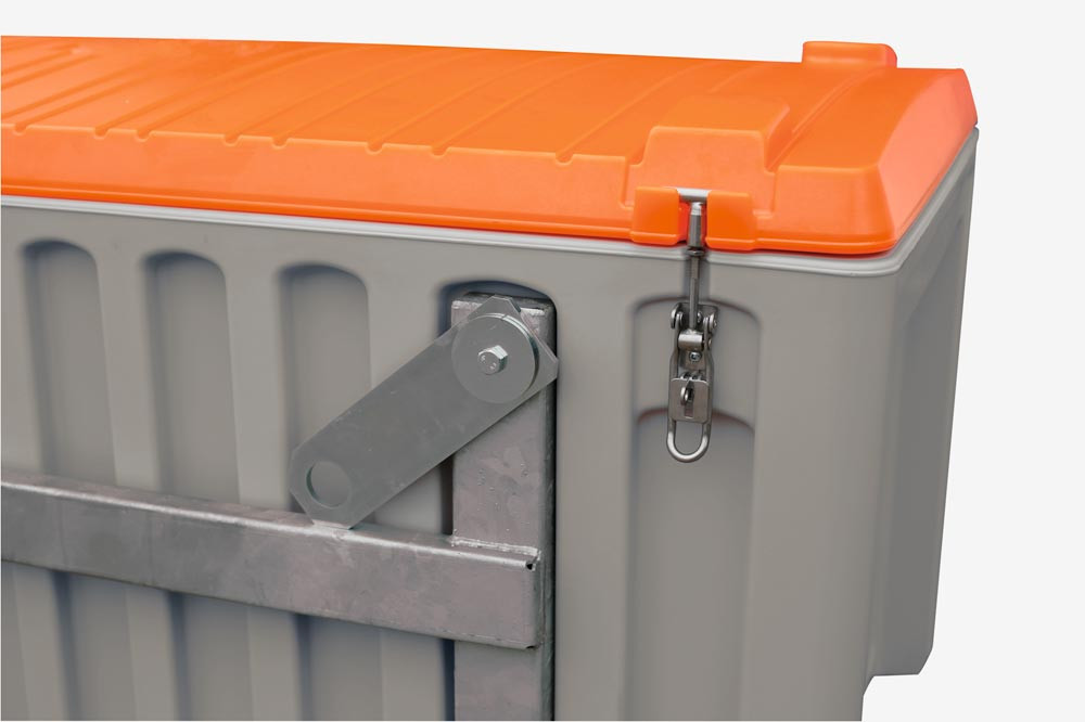 ∙ Behälter in grau/orange aus hochwertigem Polyethylen ∙ Wahlweise mit oder ohne Seitentür ∙ Zum Transport und Aufbewahren von Werkzeugen und Kleinteilen ∙ Ideale Länge, auch für Schaufeln ∙ Optimale Maße für Pritschenfahrzeuge ∙ Stapelbar, mit Arretierungsnocken ∙ Mit Staplertaschen und integrierten Handgriffen ∙ Deckelanschlag ∙ 3 Exzenterverschlüsse ∙ Durch eine umlaufende integrierte Dichtung absolut spritzwasserdicht