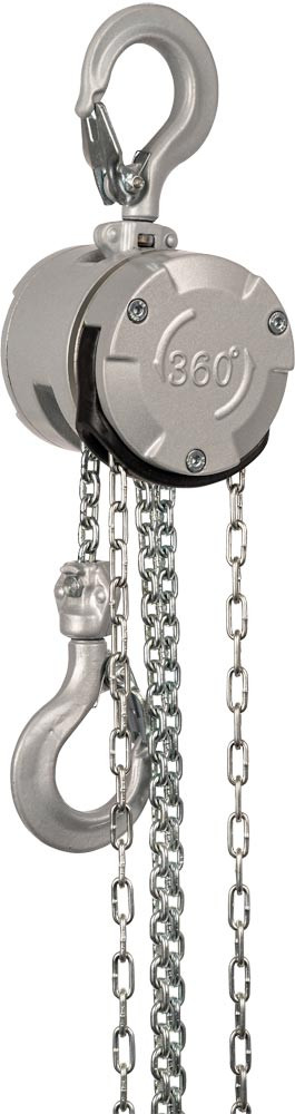 ∙ Kompakt, Leicht und Tragbar ∙ Ideal für den mobilen Einsatz durch ein geringes Gewicht ∙ Aluminium-Gehäuse aus einem Stück ∙ Innovative 360°-rotiere Handkettenführung ∙ Größere Hakenöffnungen dank der vielseitigen Haken ∙ Geringe Bauhöhe ∙ Galvanisierte Handkette nach DIN EN 818-7-T