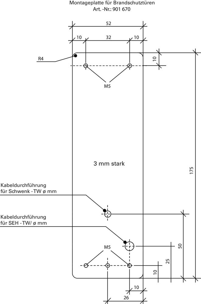 Montageplatte 901670 Montage an Brandschutztüren DINlinks / rechts L175xB52mm