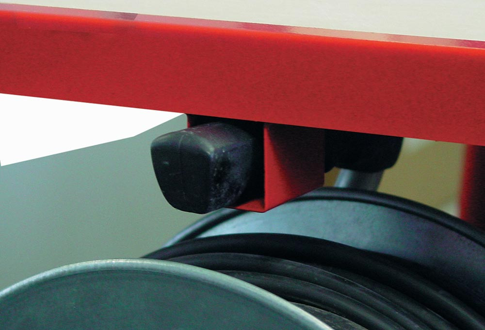 Untergestell aus stabilem Stahlrohr · anklappbar · große Räder (zusammengeklappt und aufgebaut leicht zu rollen) · Buchen-Multiplexplatte mit Kantenschutz · äußerst stabil