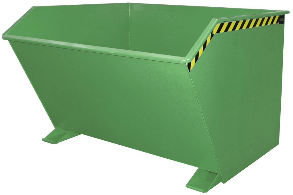 Mulden-Selbstkippbehälter, automatischer Aufrichter, Traglast 1500 kg, LxBxH 1640x1680x1090 mm, Vol. 2,00 cbm, RAL 6011 resedagrün