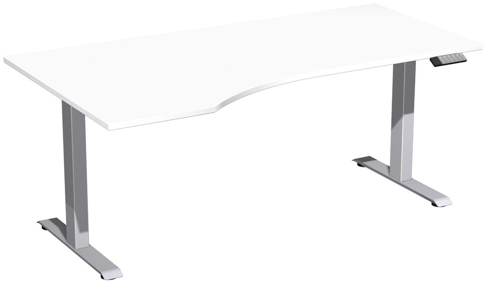 PC-Schreibtisch, elektr. höhenverstellbar, BxTxH 1800x800/1000x630-1280 mm, links 425 mm, Melamin-Platte 25 mm, weiß/silber