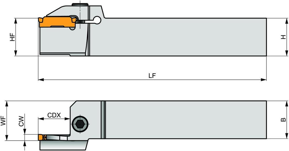 GL6-S3232PFR-32-L200090 ist ein Rechter Werkzeughalter zum axialen Planeinstechen für GL-Wendeschneidplatten. Geeignet zum Planstechen · Drehen und Profilieren. Körper für längere Standzeit oberflächenbehandelt.