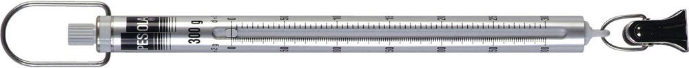 metrisch · genaue handliche Federwaage mit robustem, eloxiertem und abriebfreiem Aluminiumrohr sowie langer Präzisionsskala mit hoher Auflösung · Tara- und Nullstellvorrichtung sowie dreh- und schwenkbarer Aufhängebügel · untere Aufhängung dreh- und schwenkbar, sowie durch verschiedenes Zubehör leicht austauschbar · Messmittel zur Gewichtsbestimmung und Zugkraftmessung