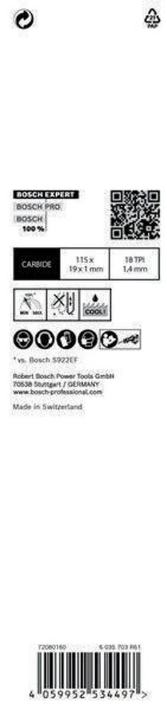 Säbelsägeblatt Expert Thin Tough Metal Länge 115 mm Breite 19 mm Zahnteilung TPI 18 1,4 mm S-Schaft 1 Stück / Karte