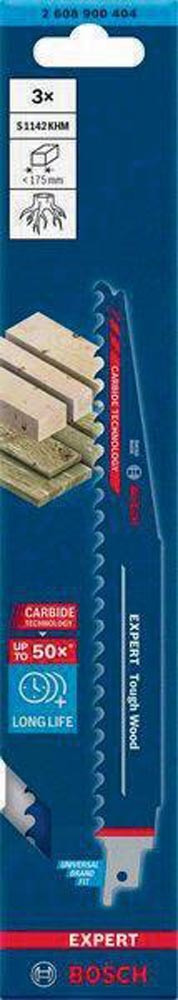 Säbelsägeblatt Expert Tough Wood Länge 300 mm Breite 25 mm Zahnteilung TPI 3 8,5 mm S-Schaft 1 Stück / Karte E6441121