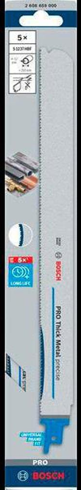 Säbelsägeblatt PRO Thick Metal precise S1237HBF Länge 300 mm Breite 25 mm Zahnteilung TPI 10+12+14 1,8+2,1+2,5 mm 3x3-Zahngeometrie 5 Stück / Karte