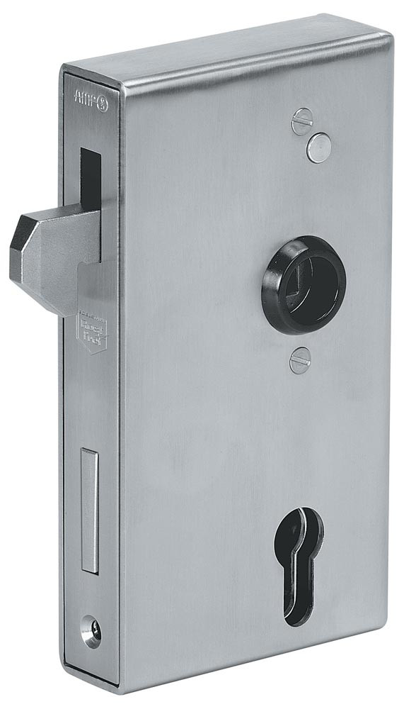 mit verzinktem Schloss (142SNIG) · nicht rostender Stahl, geschliffen · Korn 240 · Edelstahlstulp, geschliffen · vorgerichtet für Profilzylinder oder BB (mit Nachrüstsatz) · mit Aushebesicherung · Dornmaß 60 mm · Entfernung 72 mm · Vierkant 8 mm · 1-tourig · Nuss 8 mm · Zubehör: