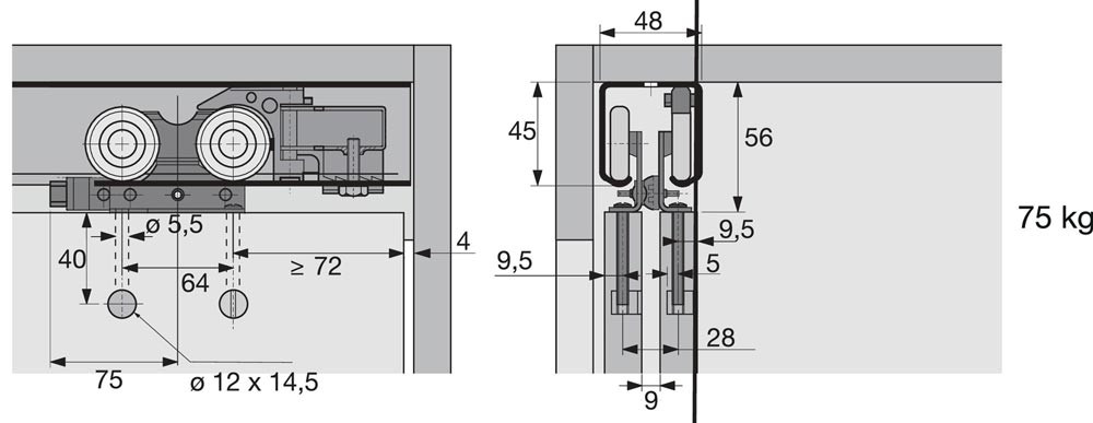 Schiebetürbeschlag Top Line 1 2 Komplett Set 75 kg DIN links / rechts E6431088