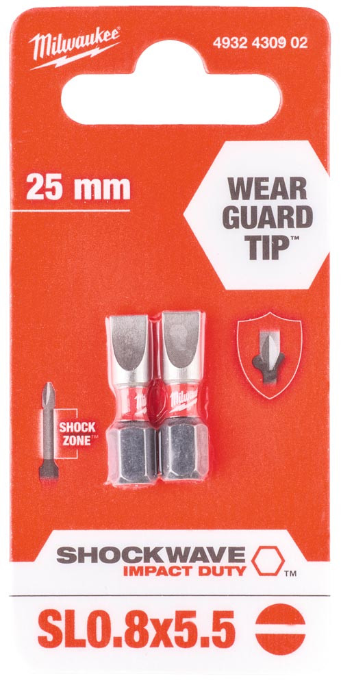 Schlagschrauber-Bit SHOCKWAVE Schlitz SL 0,8 x 5,5 x 25 mm, VE 2 Stück