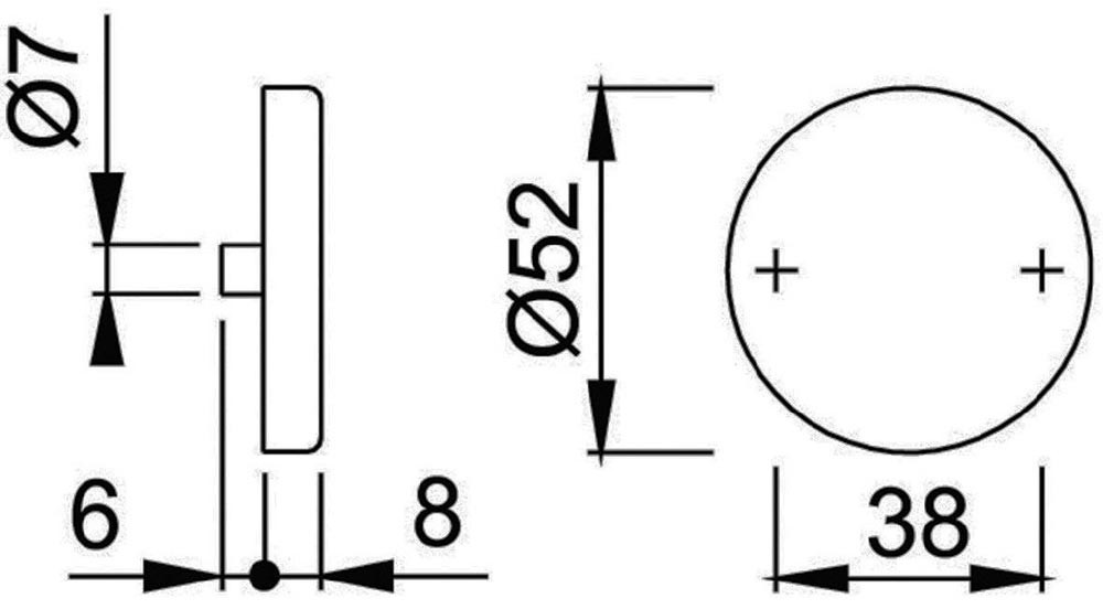 Rosetten-Ø 52 mm · Rosettenstärke 9 mm · Nockenabstand 38 mm · mit Befestigungsschrauben · für Türstärke 37-42 mm