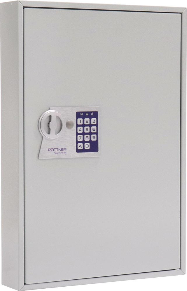 für 64 Schlüssel · batteriebetriebenes Elektronikschloss (ohne Batterien) · mechanische Notöffnung durch Schlüssel möglich, zweifach · inkl. Montagematerial · 64 Schlüsselanhänger gratis