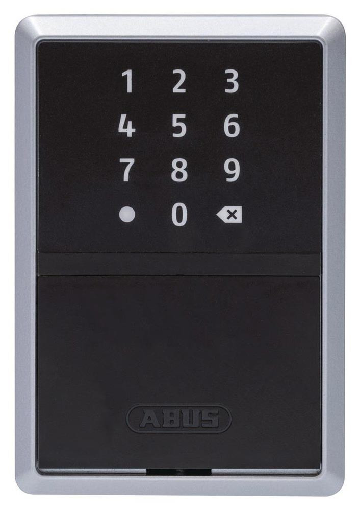 Technologie: stabiles Metallgehäuse · Fernzugriff in Echtzeit auf alle Funktionen wie Entriegeln, Verriegeln, Ereignisprotokolle einsehen und Zugangsberechtigungen verwalten durch die separat erhältliche BRIDGE One · bis zu 20 Schlüssel, bis zu 3 Autoschlüssel oder 30 Plastikkarten passen in das Fach der Schlüsselbox · zur Aufhängung von Schlüsseln bzw. Schlüsselbunden sind 2 Haken vorhanden · Smarte Bedienung und Verwaltung der KEYGARAGE mit den kostenlosen Apps HomeTec Pro Bluetooth oder ABUS One · Überblick zur Nutzung der Schlüsselbox im übersichtlichen Ereignisprotokoll der App · automatische Verriegelung nach Schließen des Fachs · beleuchtetes Tastenfeld zur optimalen Eingabe des Zahlencodes im Dunkeln · LED zur Statusmeldung (entriegelt, verriegelt, falsche PIN und Batterie schwach) · Batteriefach für 2 x AA Batterien, von außen zugänglich