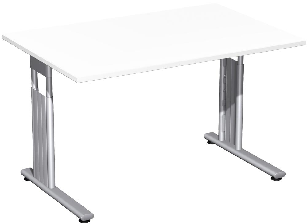 Schreibtisch, BxTxH 1200x800x680-820 mm, höhenverstellbar, Platte weiß, C-Fuß-Gestell silber