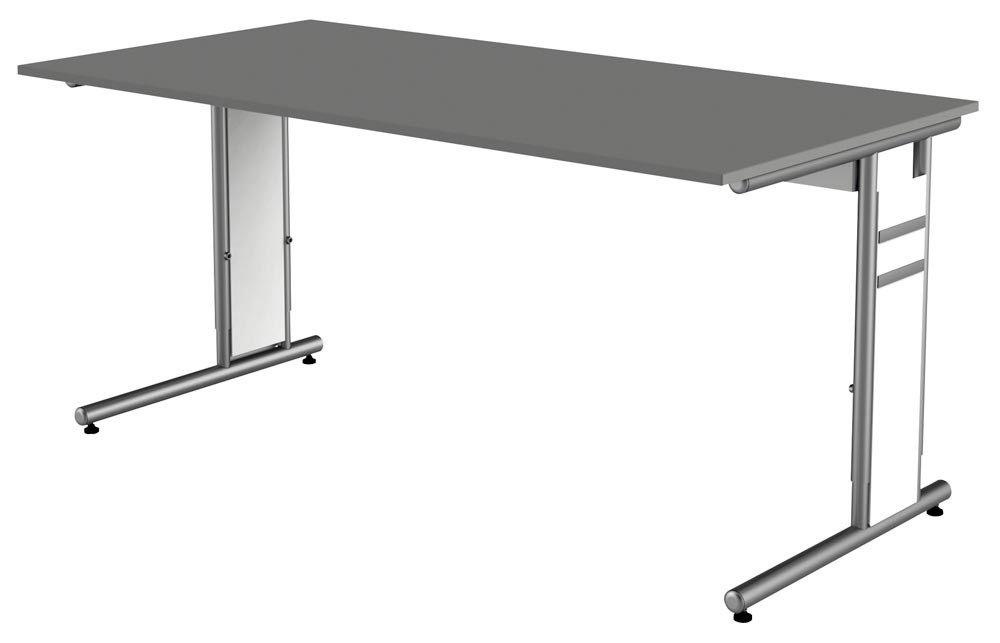 Schreibtisch, BxTxH 1600x800x680-820 mm, C-Fuß-Gestell alusilber, Platte graphit, inkl. Kabelkanal E6019661