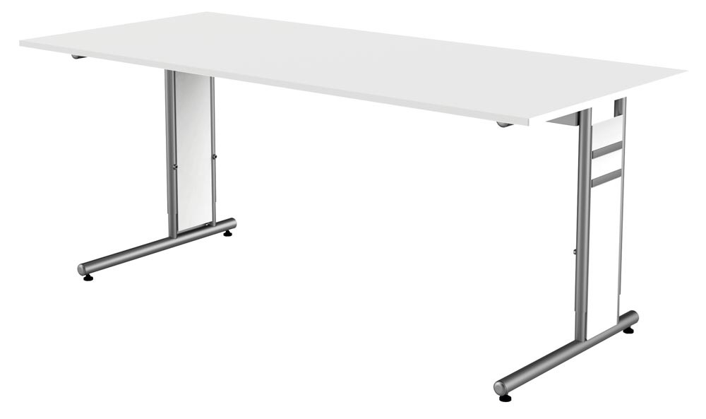 Schreibtisch, BxTxH 1800x800x680-820 mm, C-Fuß-Gestell alusilber, Platte weiß, inkl. Kabelkanal
