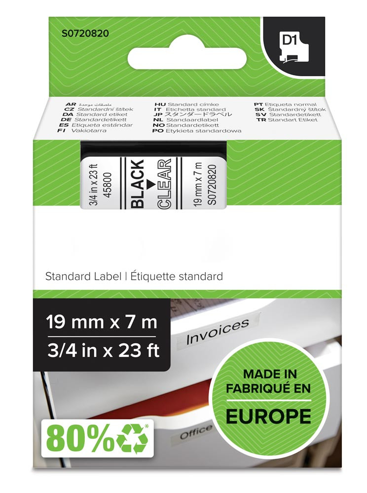 Ersatz-Beschriftungsband D1, Maße LxB 7000x9 mm, schwarz auf transparent E828188