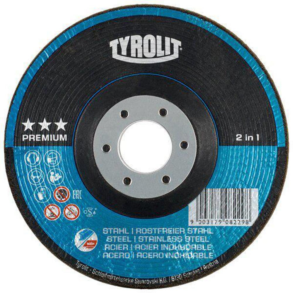 Schruppscheibe RONDELLER® D125xSmm Körnung 60 gekröpft INOX/Stahl Bohrung 22,23 mm E6413439