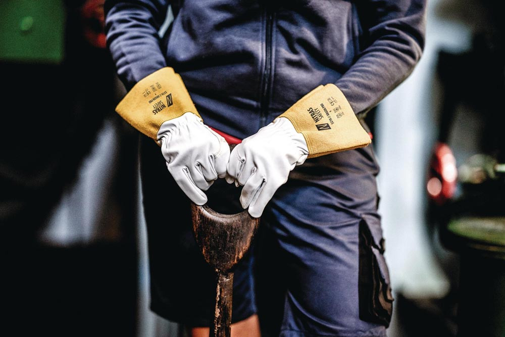 nach EN 388, EN 12477 · Kat. II · Material: sehr geschmeidiges und strapazierfähiges Nappaleder · Spaltlederstulpe · eingesetzter Daumen · innen ungefüttert · Kevlar-Nähte · Kontakthitzelevel I (100° C) · Premium-Qualität