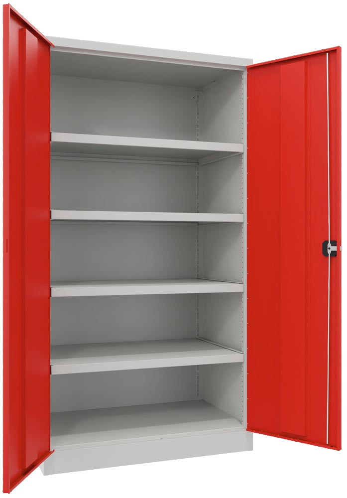 Schwerlastschrank, Vollblechtüren, ohne Trennwand, 4 Böden, 120 kg Traglast, BxTxH 1040x 630x1950 mm, RAL 7035/3000 E6490120
