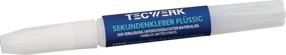 universeller Cyanacrylatkleber · kennzeichnungsfrei · geruchlos · zur Verklebung unterschiedlicher Materialverbindungen (Metall, Gummi, Holz, Pappe, Keramik sowie die meisten Kunststoffe) mit- und untereinander · anwendbar in Elektrik- und Elektronikindustrie, Maschinenbau, Metallverarbeitung, Automobilbau, Kunststoffverarbeitung, Modellbau, Möbelindustrie u. v. a. · Viskosität: 120 bis 250 mPas (20 °C) · Spaltfüllvermögen: < 0,1 mm · handfest nach 10 bis 120 Sekunden · temperaturbeständig von -50 °C bis +80 °C