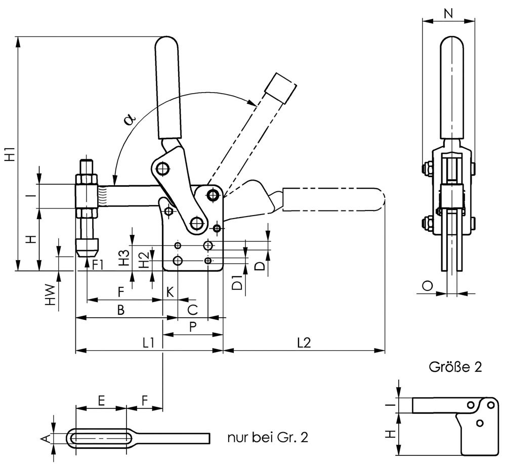Senkrechtspanner Nr. 6812P Größe 2 senkrechter Fuß schwer