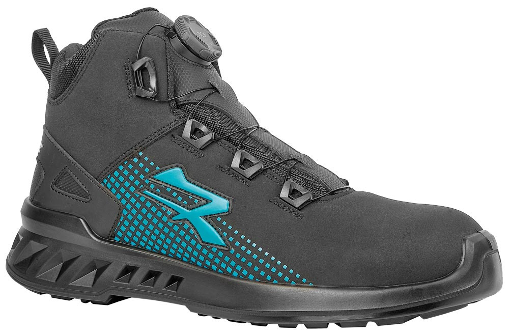 Sicherheitsklasse S3S CI FO ER AirToe Aluminium-Zehenkappe ∙ Ultraleichte, durchtrittsichere Innensohle ∙ Obermaterial aus Mikrofaser in Nubuk-Optik, wasserabweisend ∙ BOA-Schnellschnürsystem ∙ New Generation PU-Sohle ∙ U-Power original Fußbett ∙ ESD-fähigFarbe schwarz-blau