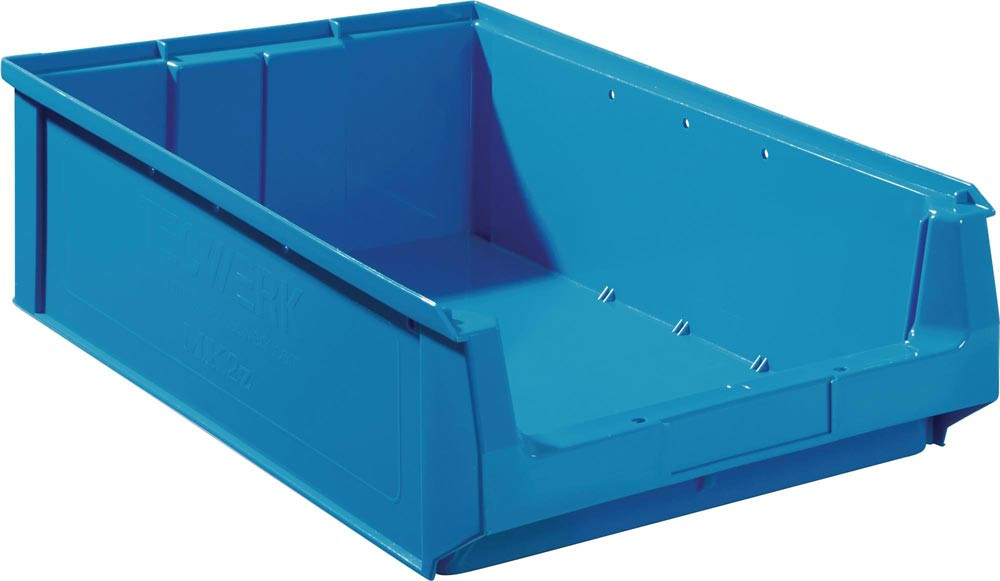 aus hochschlagfestem Polyethylen · stabile, stapelbare Mehrzweckkästen · einhängbar in Regalsysteme, sowie zur Bestückung von Regalschränken · durchgehender Stapel- und Bodenrand · hohe Tragfähigkeit · temperaturbeständig -50 °C bis +80 °C · weitgehend säure- und laugenbeständig · Farbe blau