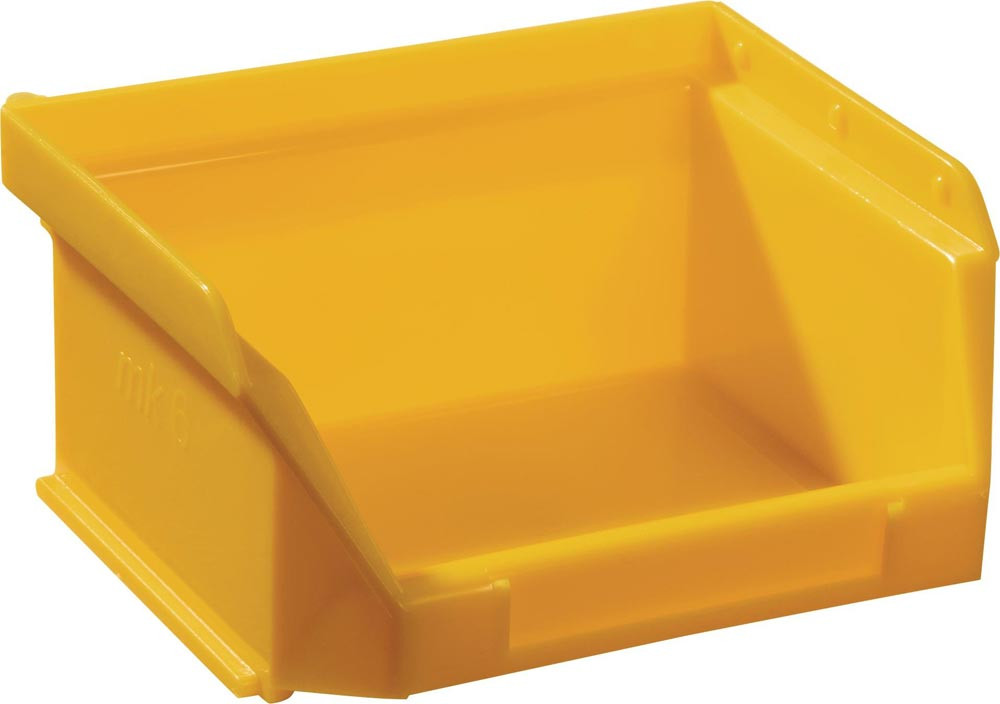 aus hochschlagfestem Polyethylen · stabile, stapelbare Mehrzweckkästen · einhängbar in Regalsysteme, sowie zur Bestückung von Regalschränken · durchgehender Stapel- und Bodenrand · hohe Tragfähigkeit · temperaturbeständig -50 °C bis +80 °C · weitgehend säure- und laugenbeständig · Farbe gelb