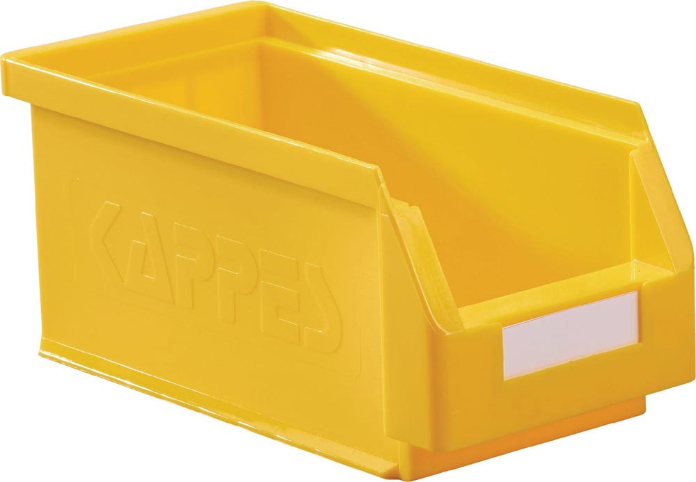 Sichtlagerkasten mit Aufhängeleiste, BxH 140x130 mm, Tiefe außen/innen 230/200 mm, Farbe gelb E863518