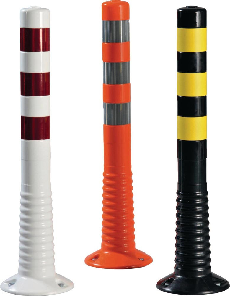 aus elastischem Kunststoff · flexibler Pfosten, der nachdem Anfahren oder Überfahren in die Ursprungsform zurückgeht · zum Aufschrauben, inkl. Befestigungsmaterial (Schrauben und Dübel)