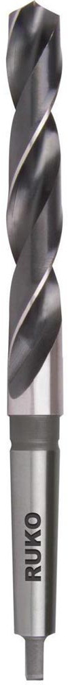 Leistungsstarker Standardbohrer mit Morsekegel. Zum Bohren von Stahl · Stahlguss und Gusseisen · legiert und unlegiert. Hohe Bruchsicherheit. · Einsatzgebiete: für Stahl und Stahlguss legiert und unlegiert (bis ca. 900 N/mm² Festigkeit), Grau-, Temper-, Sphäro- und Druckguss, Sintereisen, Neusilber, Graphit, Bronze, Messing und kurzspanende Aluminiumlegierungen
