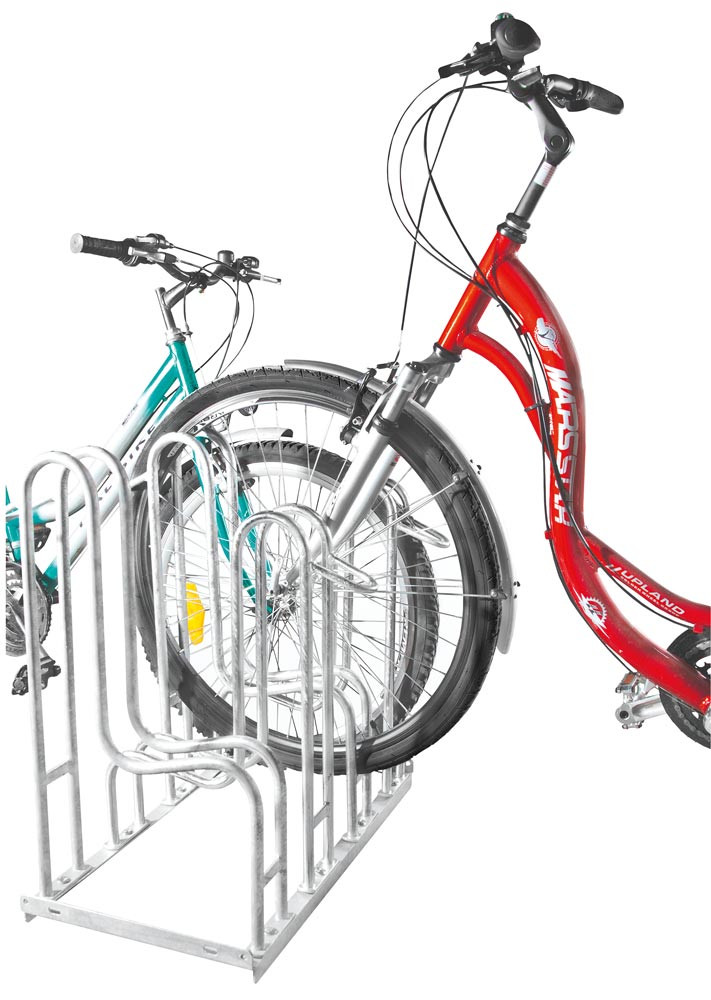 Standparker, Stahl verzinkt, einseitige Radeinstellung, Radabstand 390 mm, Hoch-/Tiefstellung, 3er Stand, Länge 1170 mm E6042680