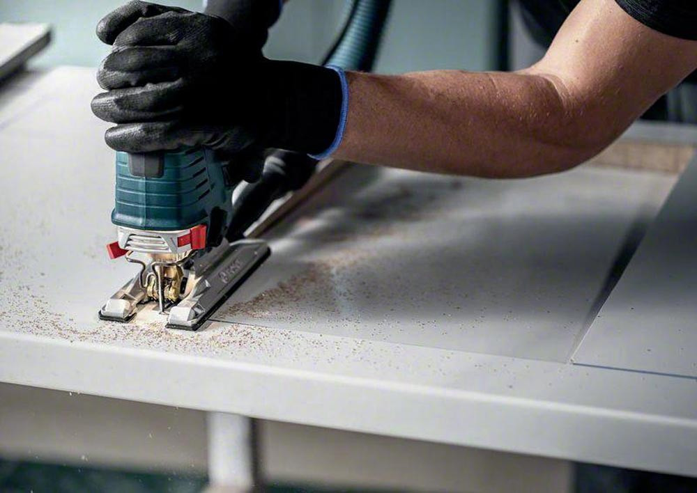 höchste Präzision für ausrissfreies Schneiden von laminierten Arbeitsplatten · durch die Zähne wird ein Ausreißen beim Aufwärts- und Abwärtshub vermieden · passend für alle T-Schaft-Stichsägen