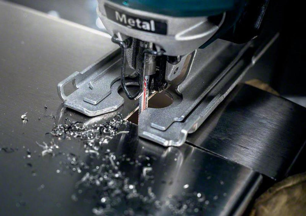 langlebiges Schneiden von Edelstahlblech · herausragende Lebensdauer durch die Bosch Carbide-Technologie · dabei wird eine Zahnleiste aus dem härtesten Metall auf den Körper lasergeschweißt · passend für alle T-Schaft-Stichsägen