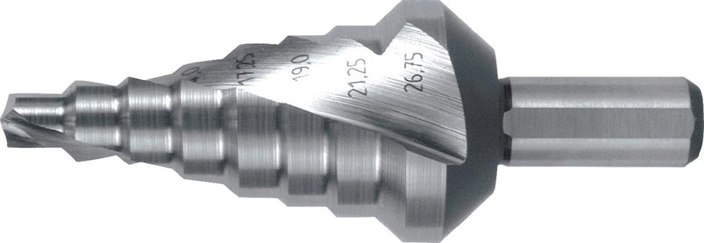 Stufenbohrer Bohrbereich 6-26,75 mm HSS spiralgenutet Schneidenanzahl 2 Stufenanzahl 8