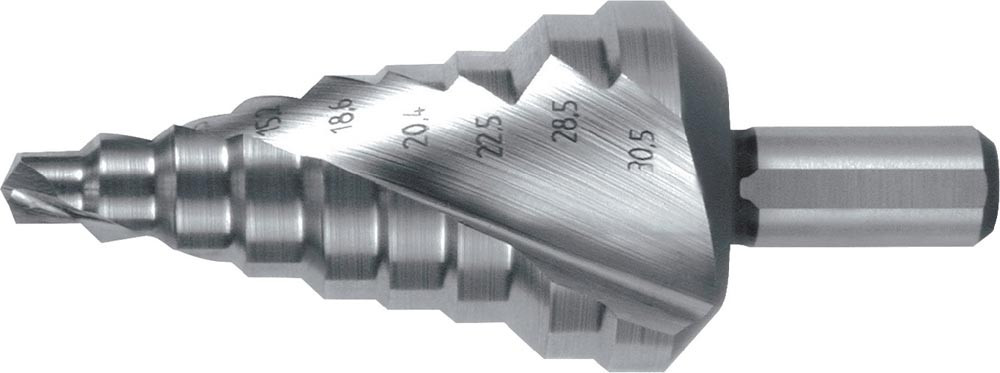 Stufenbohrer Bohrbereich 6-30,5 mm HSS spiralgenutet Schneidenanzahl 2 Stufenanzahl 9